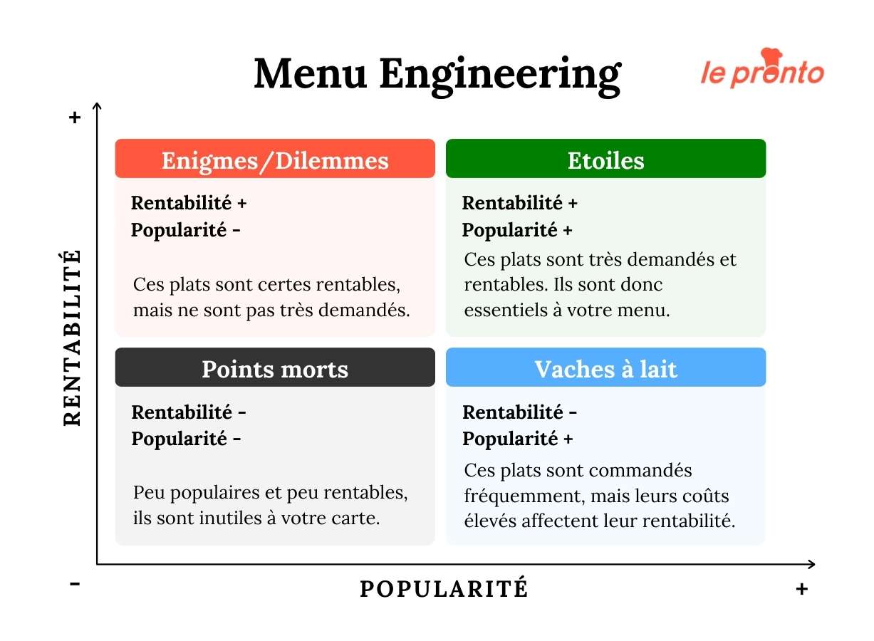 - Analyse la rentabilité de chaque plat (menu engineering).