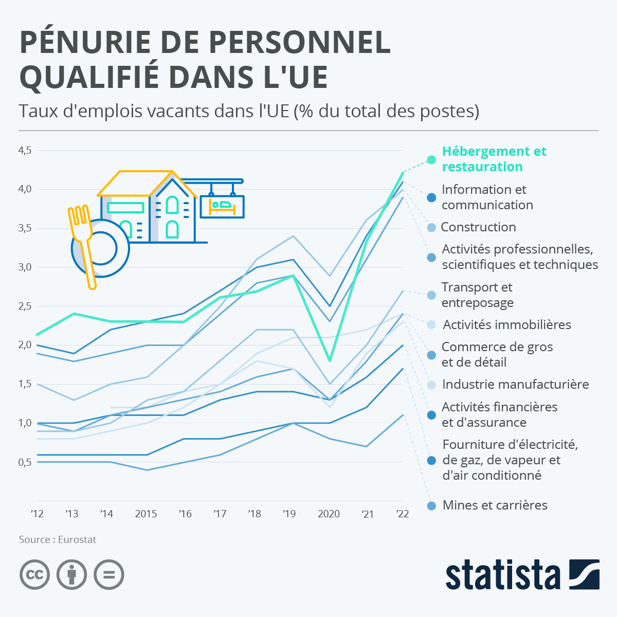 Selon l’UMIH, près de 40 % des établissements manquent de personnel chaque année, malgré des offres d’emploi en hausse.